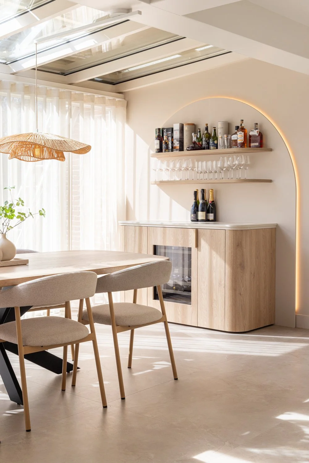 Voor dit project in Otterlo stond zachtheid centraal. In de vormen, materialen en het kleurgebruik voel je direct een rustige, gebalanceerde sfeer die door het hele interieur doorloopt.